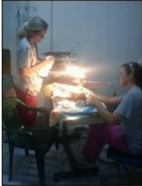 Kim Parris and Lori Saia taking care of Bondye Sov at Haitian Community Hospital in Port-au-Prince.